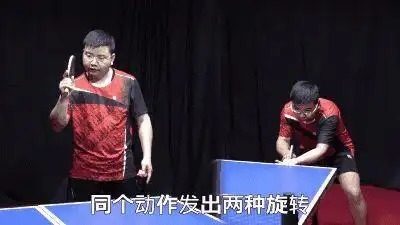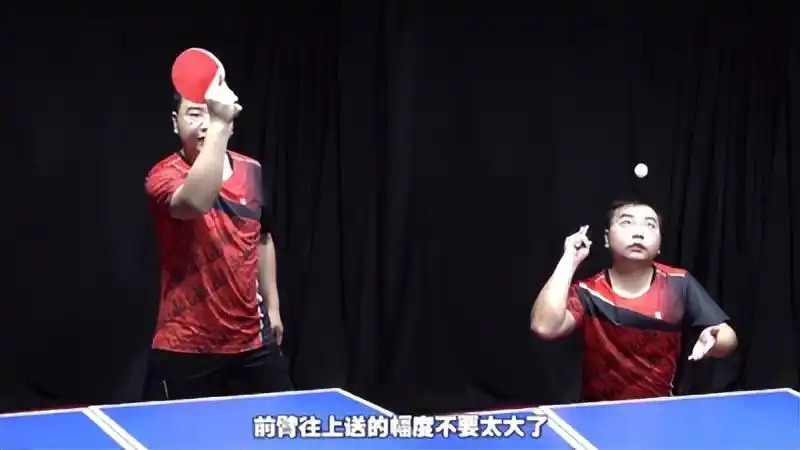 二、同一动作发两种旋转掌握同一动作发出两种旋转的技巧,可以大大增加发球的迷惑性。在发上旋球时,前臂往上送的幅度不宜过大,稍微小一点即可。摩擦完球后,手臂再向下沉,与发下旋球的动作保持一致。这样,对手在接球时很难判断球的旋转方向,从而增加接球的难度。